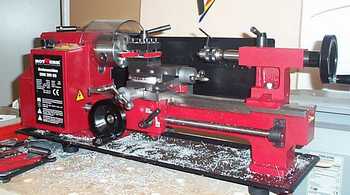 | Die Drehbank Nun konnte ich endlich dem langjährigen Traum nach einer Drehbank nachgehen. Die EDM 300DS von Rotwerk ist mit ihren 39kg tatsächlich auf jedem stabileren Tisch zu betreiben. Die gleiche Mechanik wird von vielen anderen Herstellern kleiner Drehbänke benutzt, bei denen sie aber teilweise fast das Doppelte kostet. Sie unterscheiden sich nur in der Motorisierung und Elektrik. Die kleine Rotwerk ist (lt Fa. Rotwerk) in fast allen Baumärkten, außer OBI und Parktiker, zu beziehen. Nach einigen Anlaufschwierigkeiten (Dreher lernen nicht umsonst 3 Jahre) entstanden die ersten Drehteile. |